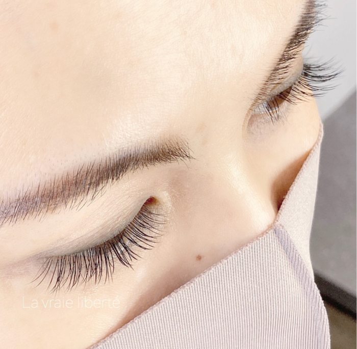 以前はしっかり目に根元からスッと上がるデザインにしていましたが、自まつ毛が成長すると、意外と緩めにカールをかけて欲しいという方が多いです。